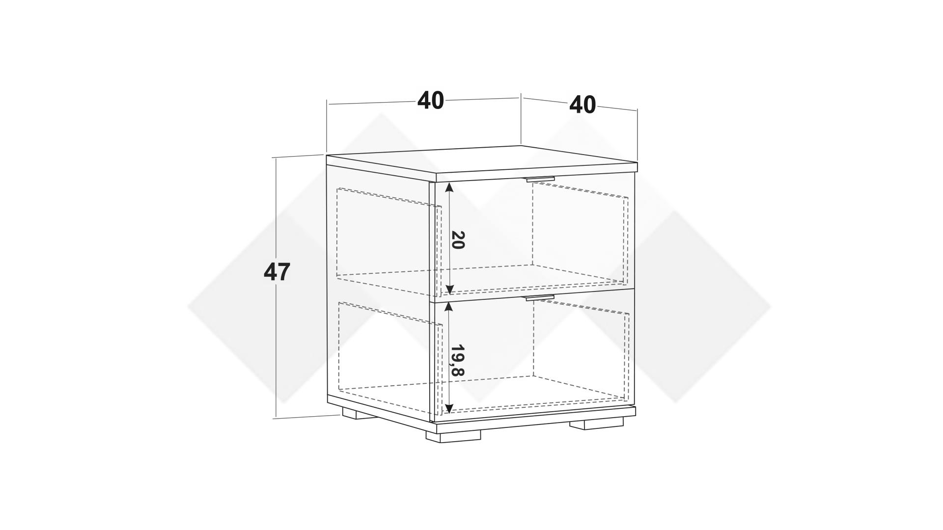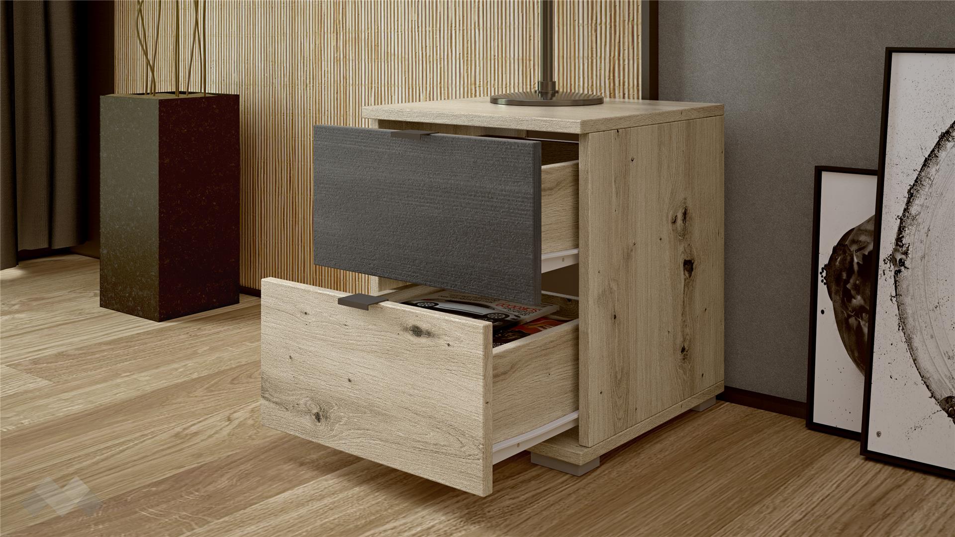 Нощният шкаф ти предоставя две чекмеджета и удобен плот на оптимална висична, за да имаш всичко за спокоен сън на една ръка разстояние - чаша вода, любима книга или нощна лампа.