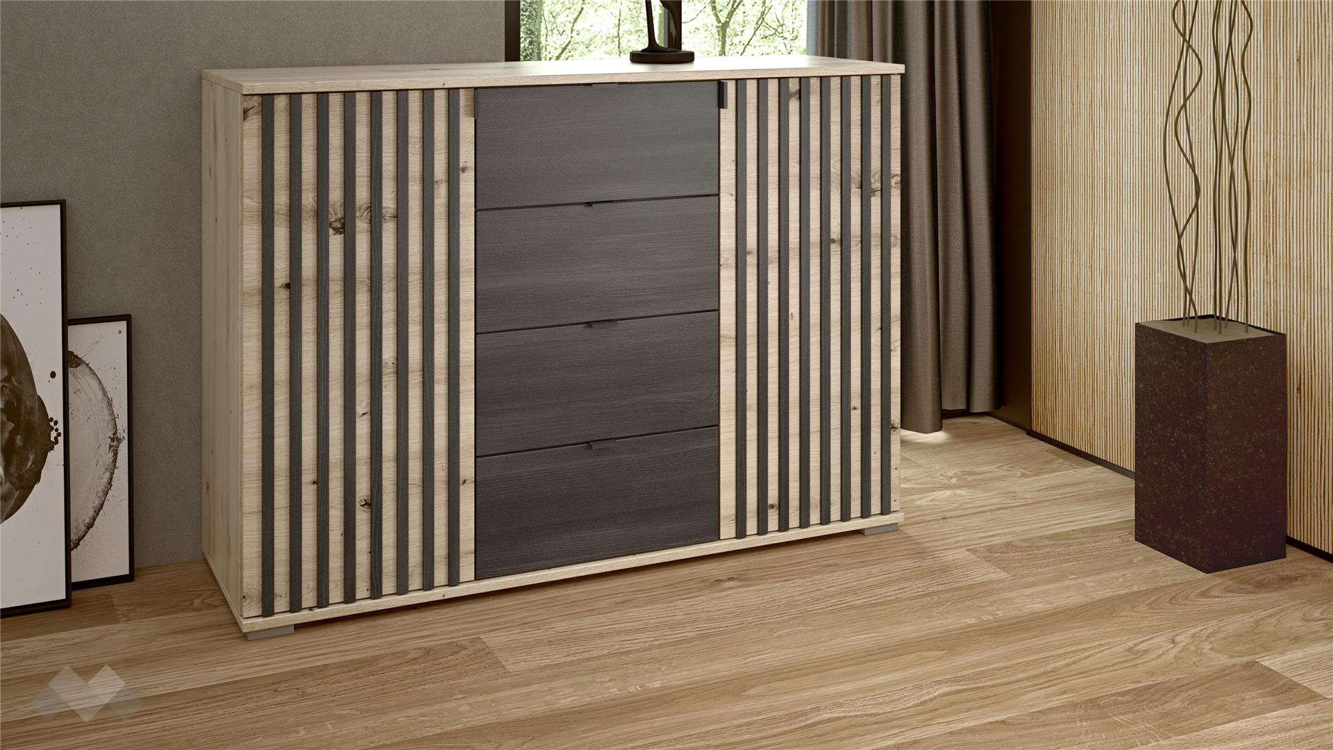 Още едно изкусително предложение от нас - скрин Верона. Стил, практичност и уют, благодарение на модерната му визия. Контрастът между светлия дъб артисан и тъмния норвежки бор, комбинирани с вертикалната форма на ламели е изключително впечатляваща комбинация.