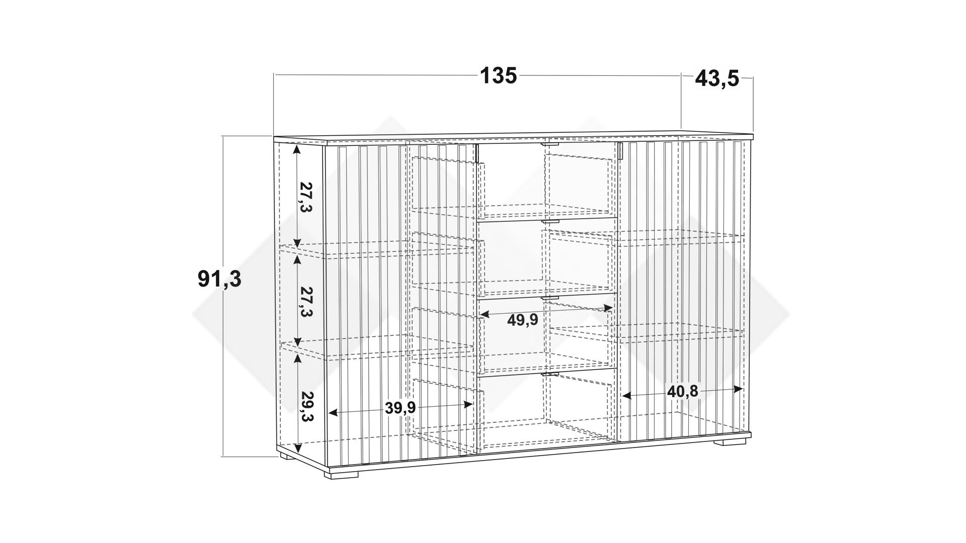 Д: 135 см Ш: 43,5 см В: 91,3 см