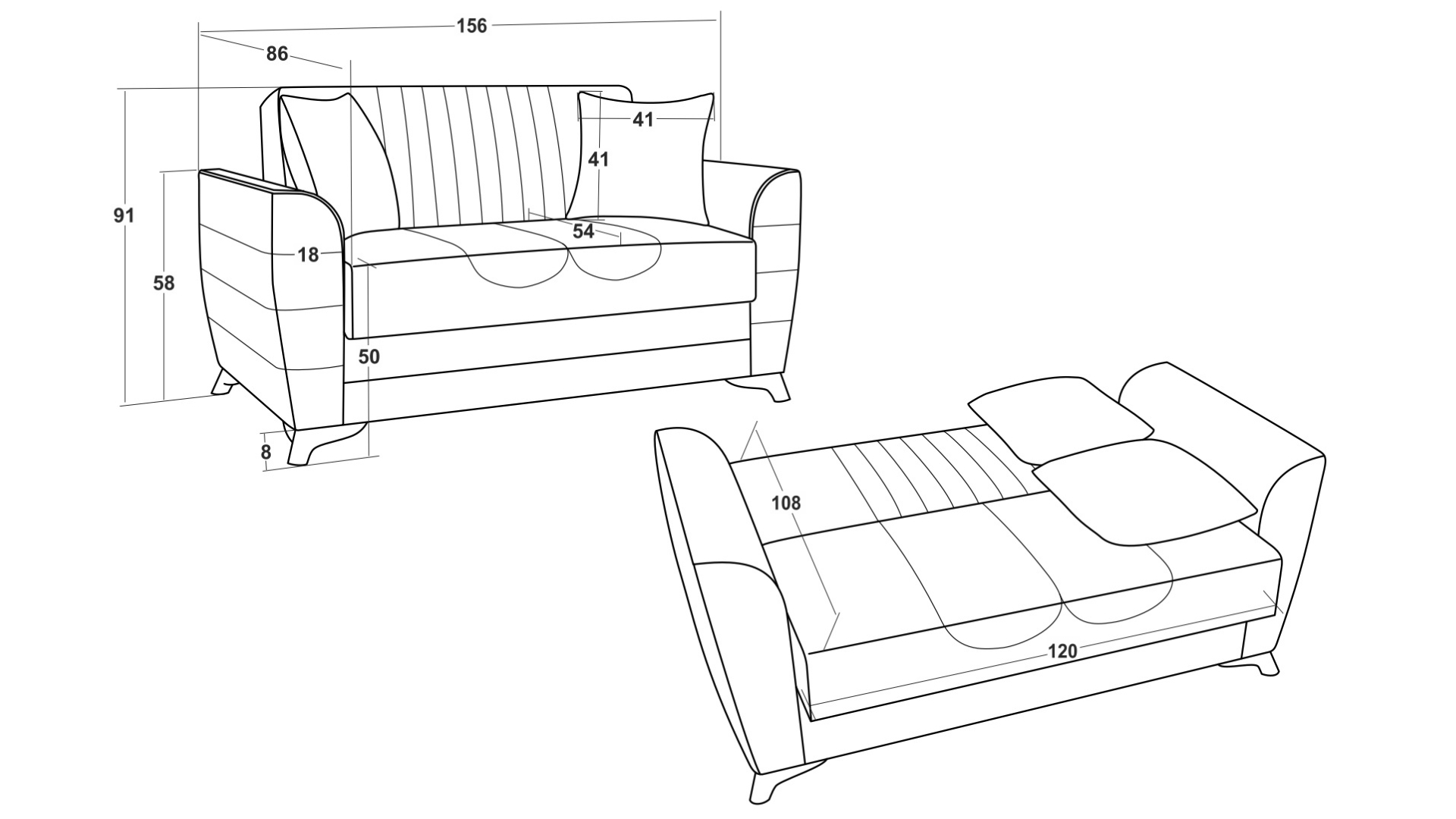 Диванът има здрава конструкция от масивна дървесина и ПДЧ, отличаващи се с устойчивост за дълъг период на употреба. Моделът се предлага в цветови комбинации, подходящи както за класически, така и за по-модерен интериор.