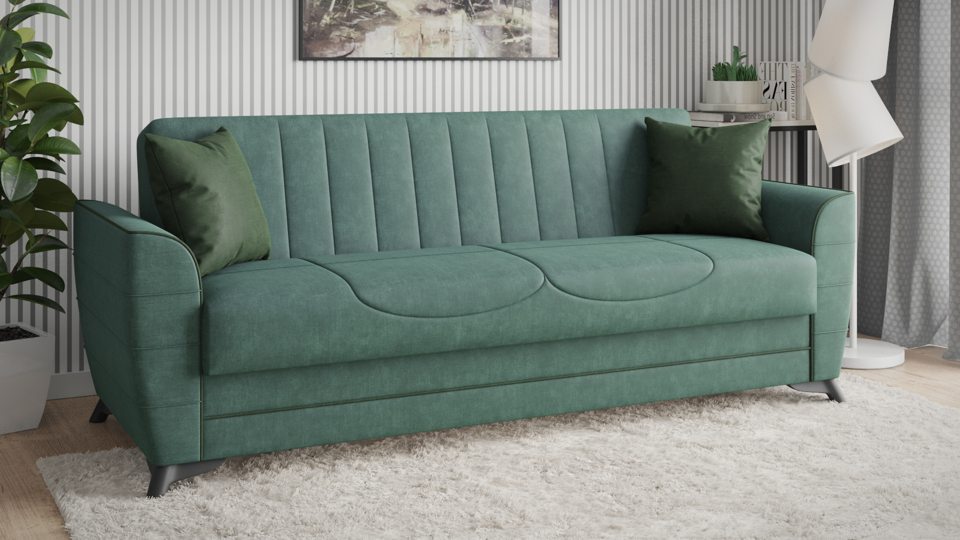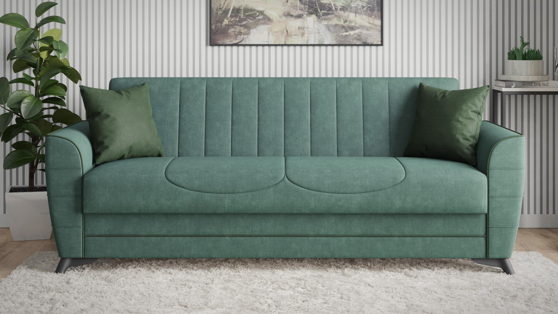Диванът има здрава конструкция от масивна дървесина и ПДЧ, отличаващи се с устойчивост за дълъг период на употреба. Моделът се предлага в цветови комбинации, подходящи както за класически, така и за по-модерен интериор.
