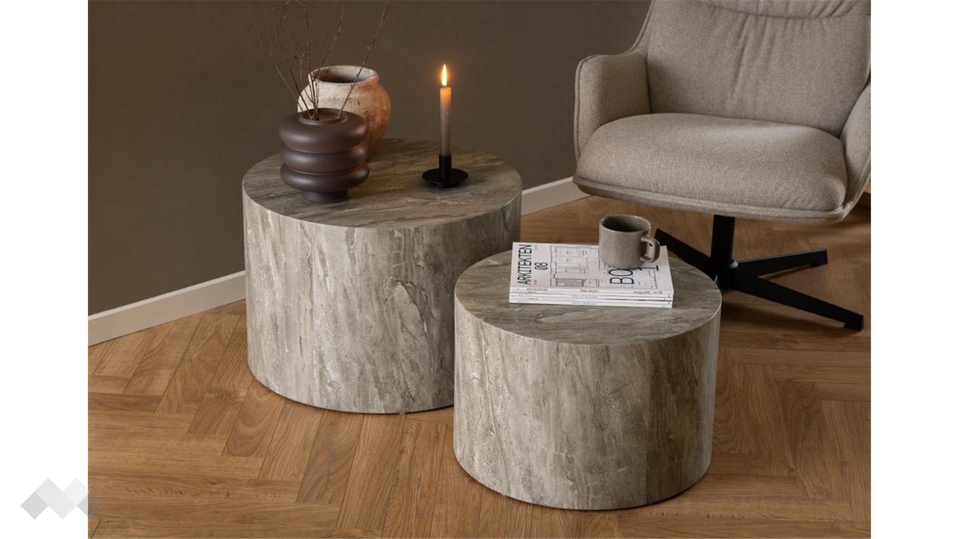 Конструкцията на масите е изработена от МДФ – материал, който осигурява здравина, устойчивост и дълготрайност. Повърхността е лесна за поддръжка и почиства се без усилие, което ги прави удобен избор за ежедневна употреба. Комплектът включва две кръгли маси с различни размери, които могат да се използват заедно или поотделно в зависимост от нуждите ти.